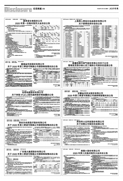 2020年第三季度可转换公司债券转股情况的公告 -