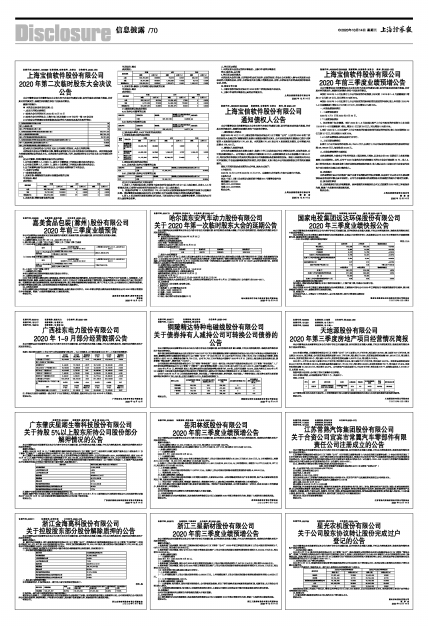 2020年三季度业绩快报公告 -