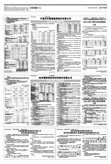 根据上海证券交易所《上市公司行业信息披露指引第十八号一一化工》有关规定和披露要求,现将宁夏宝丰能源集团股份有限公司(以下简称“公司”)2020年第前三季度主要经营数据披露如下: