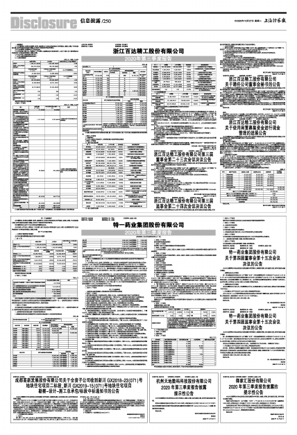 2020年第三季度报告披露的