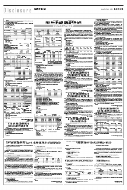 详见上交所网站www.sse.com.cn《四川东材科技集团股份有限公司2020年第三季度报告》。