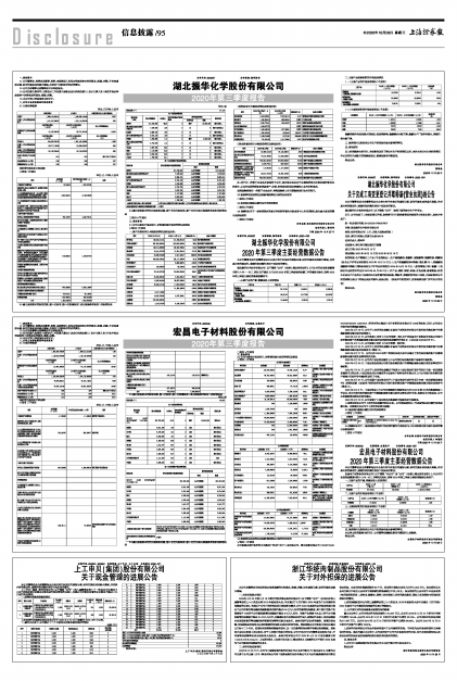 宏昌电子材料股份有限公司(以下简称“本公司”或“公司”)根据上海证券交易所《上市公司行业信息披露指引第十八号一化工》等相关规定,现将2020年第三季度主要经营数据公告如下: