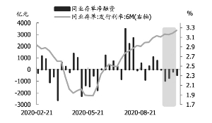 同业存单发行利率亦居高不下。Wind数据显示,10月,同业存单发行利率为3.06%,是年初至今的最高峰值。