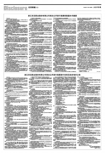 浙江东亚药业股份有限公司首次公开发行股票招股意向书摘要