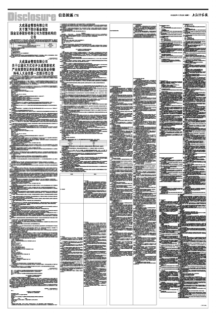 根据《中华人民共和国证券投资基金法》(以下简称“《基金法》”)、《公开募集证券投资基金运作管理办法》的有关规定和《大成高新技术产业股票型证券投资基金基金合同》(以下简称“《基金合同》”)的约定,大成高新技术产业股票型证券投资基金(以下简称“本基金”)的基金管理人大成基金管理有限公司(以下简称“本基金管理人”)经与本基金的基金托管人中国农业银行股份有限公司协商一致,决定以通讯方式召开本基金的基金份额持有人大会,会议具体安排如下: