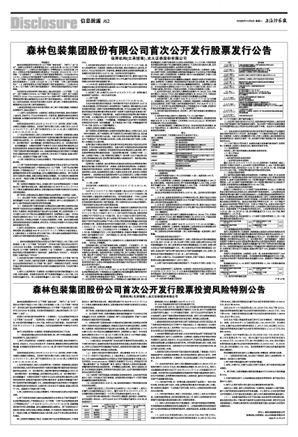 森林包装集团股份公司首次公开发行股票投资风险特别公告