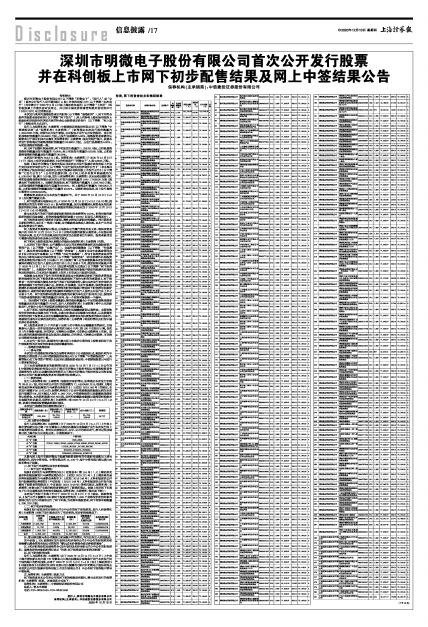 发行人与保荐机构(主承销商)定于2020年12月11日(T+3日)上午在上海市浦东新区东方路778号紫金山大酒店四楼会议室海棠厅进行本次发行网下限售账户的摇号抽签,并将于2020年12月14日(T+4日)在《上海证券报》《中国证券报》《证券时报》和《证券日报》披露的《深圳市明微电子股份有限公司首次公开发行股票并在科创板上市发行结果公告》中公布网下限售账户摇号中签结果。