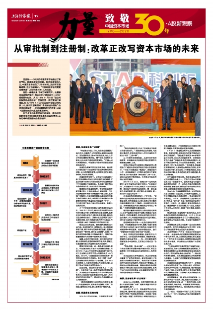 “推动注册制改革,开启了中国资本市场真正市场化的时代。”吴晓求将试点注册制,与股权分置改革、沪深交易所设立,列为中国资本市场30年的“三座丰碑”。