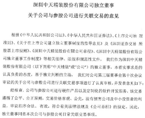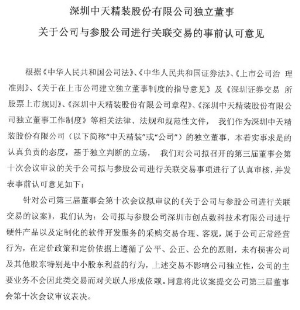 深圳中天精装股份有限公司(以下简称“公司”)于2020年12月29日召开第三届董事会第十次会议,审议通过《关于公司与参股公司进行关联交易的议案》,该议案无需提交公司股东大会审议。独立董事发表了事前认可意见和独立意见,保荐机构出具了核查意见。