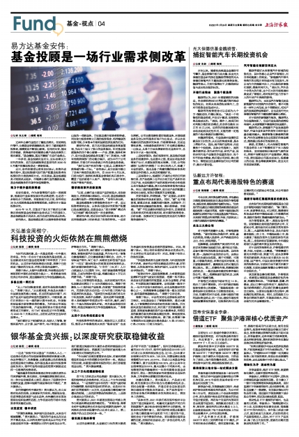 “我们看好以下领域的机会,包括人工智能、智能网联汽车、云计算、国产替代、电子制造业、新经济等细分方向。”周楷宁表示。