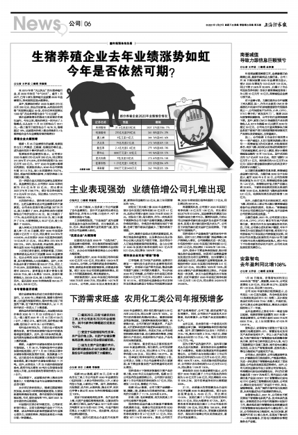 □ 因为主营产品的量价齐升,国内草甘膦龙头企业兴发集团、新安股份去年业绩都取得了大幅增长。