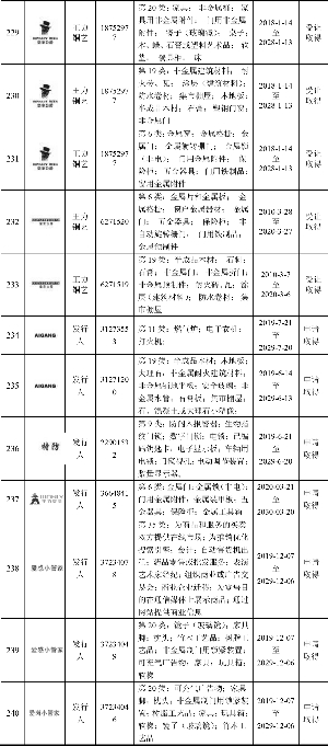 229 一种门锁联动机构及门锁结构 发行人 ZL201920553618.9 2020-03-10 2019-04-22 实用新型 申请取得