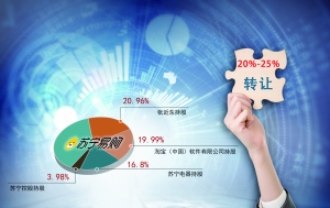 公司最新股权结构显示,苏宁创始人张近东持股比例为20.96%、淘宝(中国)软件有限公司持股比例为19.99%、苏宁电器持股比例为16.8%、苏宁控股持股比例为3.98%。当前,公司总股本为93.10亿股,按照2月24日7元/股的收盘价测算,此次转让比例20%至25%,接盘方需支付对价约为130.34亿元至162.93亿元。