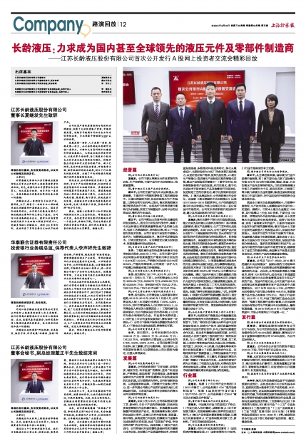 ——江苏长龄液压股份有限公司首次公开发行A股网上投资者交流会精彩回放