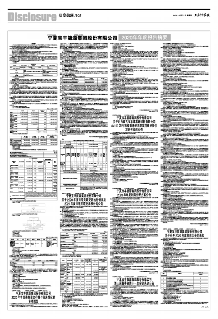 具体内容详见公司同日刊登在《中国证券报》、《上海证券报》、《证券时报》、《证券日报》和上海证券交易所网站(www.sse.com.cn)的《宁夏宝丰能源集团股份有限公司关于召开2020年年度股东大会的通知》(公告编号:2021-014)。