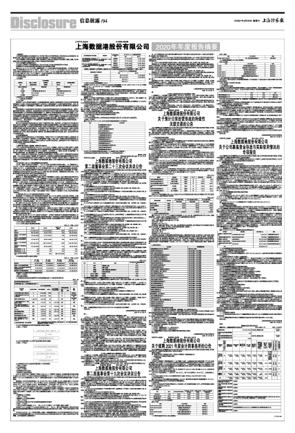 上海数据港股份有限公司2020年年度报告摘要