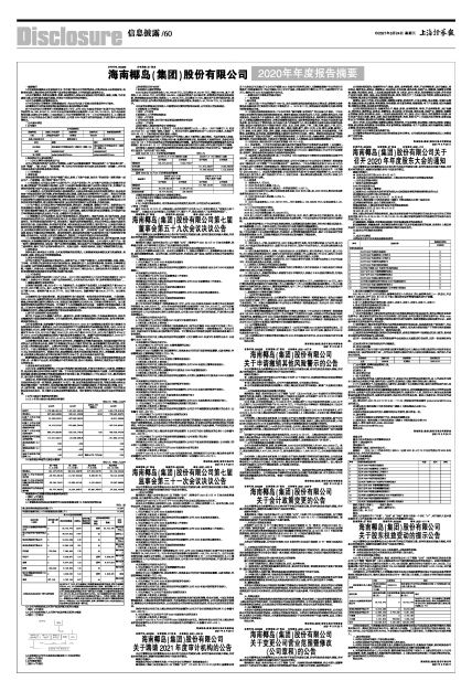海南椰岛(集团)股份有限公司(以下简称“公司”)董事会于2021年3月17日向全体董事、监事通过传真、电子邮件等方式发出了会议通知和会议材料。