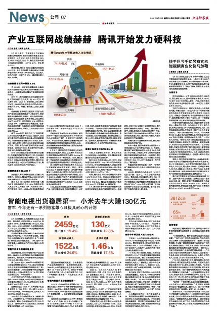 作为小米互联网业务核心的广告业务在2020年实现收入127亿元,同比增长19.2%。2020年四季度,小米广告业务收入再创单季度历史新高,收入达37亿元,同比增长23.1%。