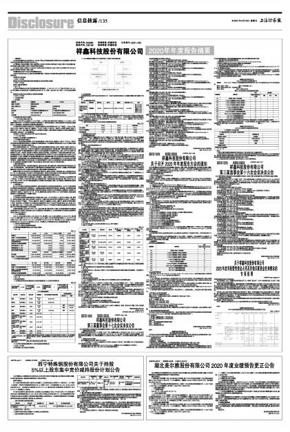 股票代码:002965 股票简称:祥鑫科技 公告编号:2021-032