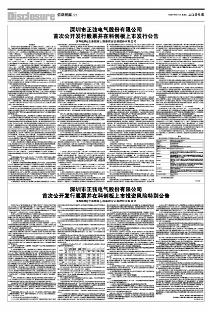 19、拟参与本次发行申购的投资者,须认真阅读2021年4月9日刊登在上交所(www.sse.com.cn)的《深圳市正弦电气股份有限公司首次公开发行股票并在科创板上市招股意向书》全文,特别是其中的“重大事项提示”及“风险因素”章节,充分了解发行人的各项风险因素,谨慎判断其经营状况及投资价值,并审慎做出投资决策。发行人受到政治、经济、行业及经营管理水平的影响,经营状况可能会发生变化,由此可能导致的投资风险应由投资者自行承担。