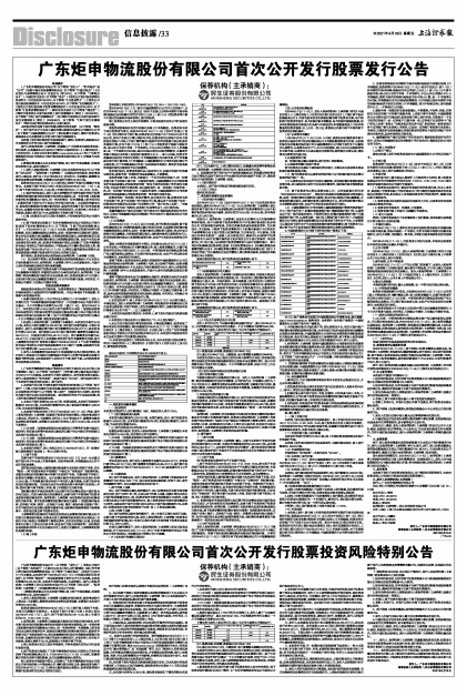 广东炬申物流股份有限公司首次公开发行股票投资风险特别公告