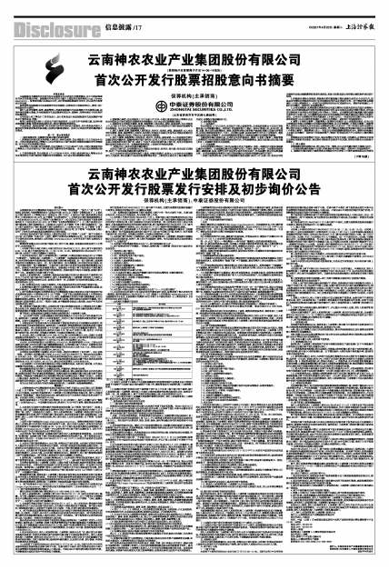 云南神农农业产业集团股份有限公司(以下简称“神农集团”、“发行人”或“公司”)根据《证券发行与承销管理办法》(证监会令[第144号],以下简称“《管理办法》”)、《首次公开发行股票并上市管理办法》(证监会令[第173号])、《首次公开发行股票承销业务规范》(中证协发[2018]142号,以下简称“《业务规范》”)、《首次公开发行股票配售细则》(中证协发[2018]142号,以下简称“《配售细则》”)和《首次公开发行股票网下投资者管理细则》(中证协发[2018]142号,以下简称“《投资者管理细则》”)、《上海市场首次公开发行股票网上发行实施细则》(上证发[2018]40号,以下简称“《网上发行实施细则》”)及《上海市场首次公开发行股票网下发行实施细则》(上证发[2018]41号,以下简称“《网下发行实施细则》”)、中国证券登记结算有限公司上海分公司(以下简称“中国结算上海分公司”)的有关业务规则组织实施首次公开发行股票。