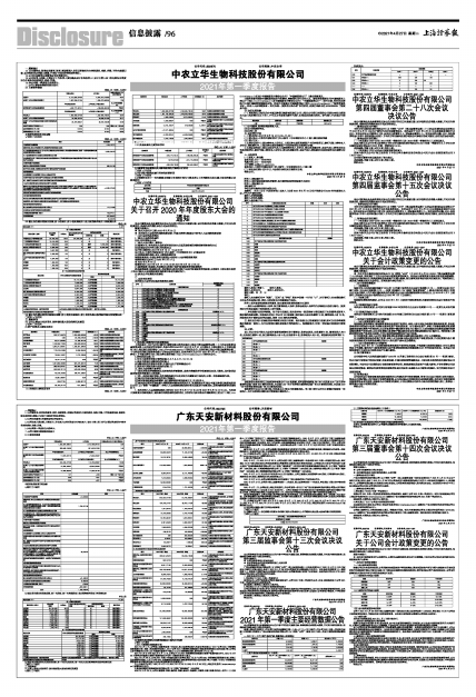 具体内容详见公司于同日发布的《中农立华生物科技股份有限公司2021年第一季度报告》、《中农立华生物科技股份有限公司2021年第一季度报告》正文。