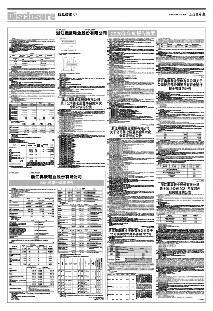 浙江奥康鞋业股份有限公司(以下简称“公司”)于2021年4月13日以邮件的方式向全体董事发出第七届董事会第六次会议通知,并于2021年4月23日在浙江省永嘉县千石奥康工业园公司视频会议室以现场结合通讯方式召开。应参与表决董事9名,实际参与表决董事9名,公司监事、高级管理人员列席了本次会议。会议的召集和召开程序符合《中华人民共和国公司法》和《公司章程》的有关规定,会议合法有效。