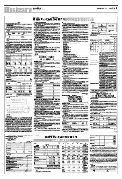 公司2020年年度报告具体内容详见2021年4月27日公司在上交所网站(www.sse.com.cn)刊登的《福建省青山纸业股份有限公司2020年年度报告》全文及《福建省青山纸业股份有限公司2020年年度报告摘要》。