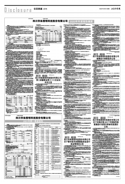 详见同日披露的《四川华体照明科技股份有限公司2020年年度报告及摘要》。