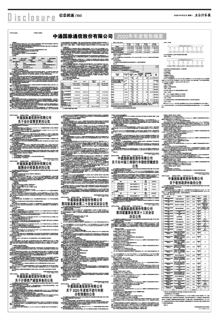 具体内容详见公司同日在上海证券交易所网站(www.sse.com.cn)披露的《中通国脉通信股份有限公司2020年年度报告》及《中通国脉通信股份有限公司2020年年度报告摘要》。