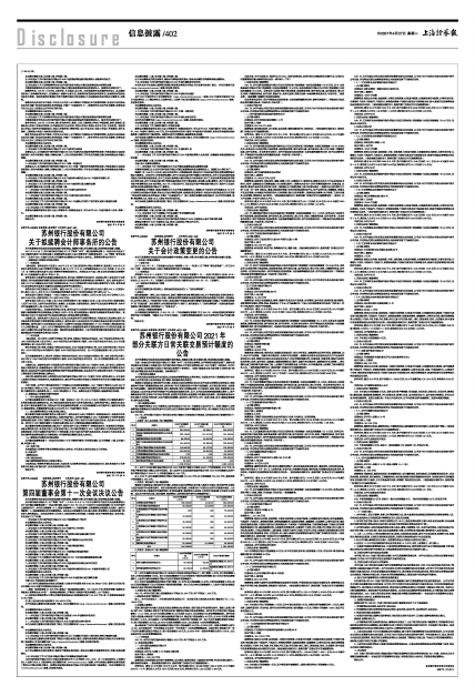 证券代码:002966 证券简称:苏州银行 公告编号:2021-021