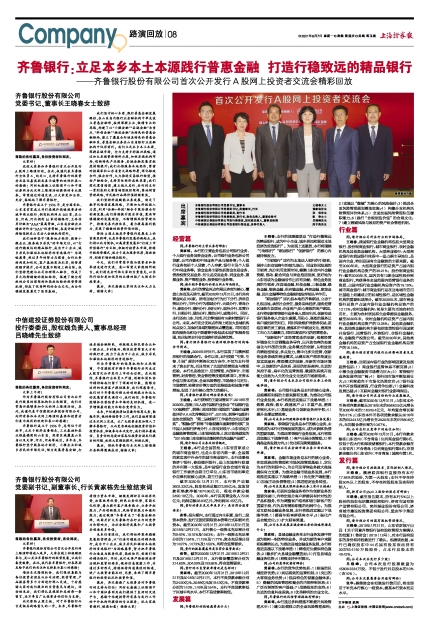 ——齐鲁银行股份有限公司首次公开发行A股网上投资者交流会精彩回放