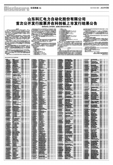 发行人:山东科汇电力自动化股份有限公司