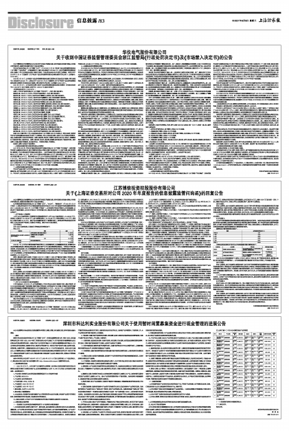 华仪电气股份有限公司(以下简称“公司”)于2019年12月26日收到中国证券监督管理委员会(以下简称“中国证监会”)《调查通知书》(编号:浙证调查字2019256号),因公司涉嫌信息披露违法违规,根据《中华人民共和国证券法》等有关规定,中国证监会决定对公司进行立案调查。详见公司于2019年12月27日披露的《关于收到中国证券监督管理委员会调查通知书的公告》(公告编号:2019-095)。