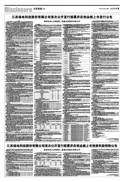 江苏扬电科技股份有限公司首次公开发行股票并在创业板上市发行公告