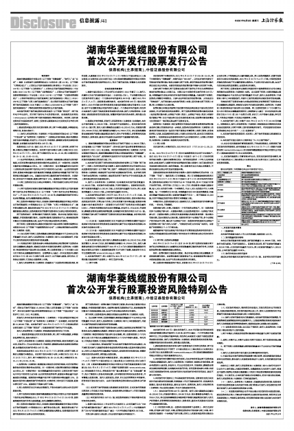 10、本公告仅对股票发行事宜扼要说明,不构成投资建议。投资者欲了解本次发行的详细情况,请仔细阅读2021年6月9日(T-1日)登载于巨潮资讯网(www.cninfo.com.cn)的《湖南华菱线缆股份有限公司首次公开发行A股股票招股说明书》全文及相关资料。