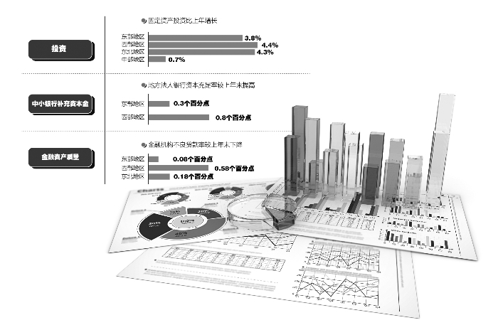 2020年,中小银行多渠道补充资本金取得新进展,东部和西部地区地方法人银行资本充足率分别较上年末提高0.3个和0.8个百分点。金融资产质量总体向好,东部、西部和东北地区金融机构不良贷款率分别较上年末下降0.08个、0.58个和0.18个百分点。高风险金融机构和重点领域风险得到有序处置,互联网金融风险明显收敛。