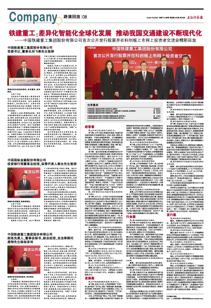 ——中国铁建重工集团股份有限公司首次公开发行股票并在科创板上市网上投资者交流会精彩回放