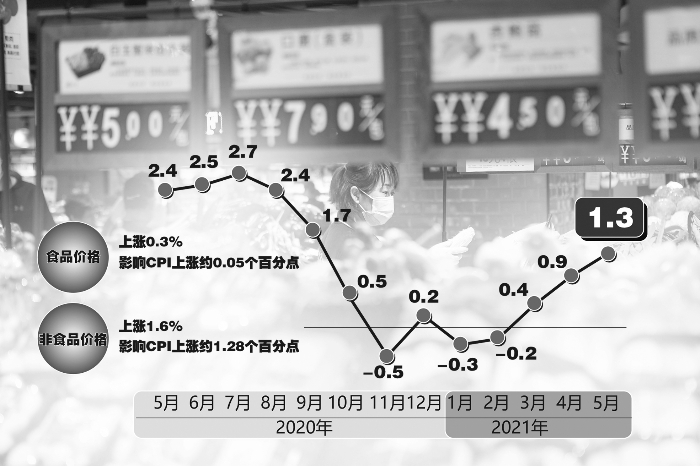 5月CPI同比涨1.3% 居民消费价格总体稳定