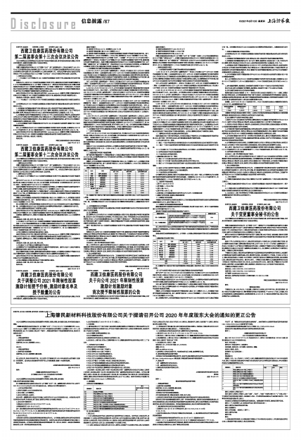 上海肇民新材料科技股份有限公司关于提请召开公司2020年年度股东大会的通知的更正公告