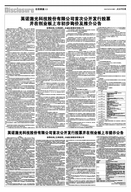 13、本公告仅对本次发行中有关发行安排和初步询价事宜进行说明。投资者欲了解本次发行的详细情况,请仔细阅读2021年6月16日(T-6日)登载于深交所网站(http://www.szse.cn)和巨潮资讯网(www.cninfo.com.cn)的《英诺激光科技股份有限公司首次公开发行股票并在创业板上市招股意向书》(以下简称“《招股意向书》”)全文。