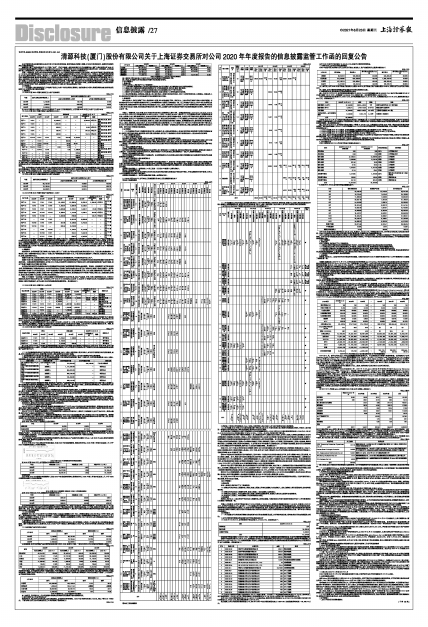 清源科技(厦门)股份有限公司关于上海证券交易所对公司2020年年度报告的信息披露监管工作函的回复公告