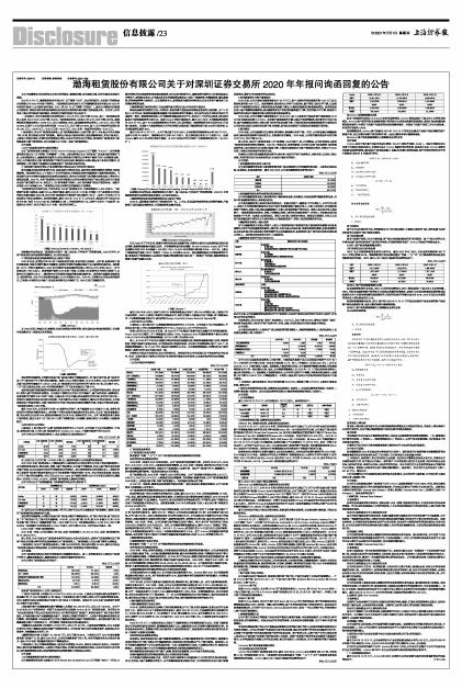 2021年6月4日,渤海租赁股份有限公司(以下简称“公司”,如无特别说明,本回复中的简称或名词的释义与2020年年报中的相同。)收到深圳证券交易所《关于对渤海租赁股份有限公司2020年年报的问询函》(公司部年报问询函〔2021〕第321号,以下简称“问询函”),要求公司就相关问题做出书面说明,将相关说明材料报送深圳证券交易所并按照相关要求履行信息披露义务。公司对上述问询函中提出的问题进行逐项落实,现将相关问题的回复内容公告如下: