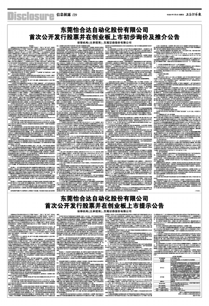 东莞怡合达自动化股份有限公司(以下简称“怡合达”、“发行人”或“公司”)首次公开发行股票并在创业板上市申请已经深圳证券交易所(以下简称“深交所”)创业板上市委员会委员审议通过,并已经中国证券监督管理委员会同意注册(证监许可〔2021〕1717号)。《东莞怡合达自动化股份有限公司首次公开发行股票并在创业板上市招股意向书》及附件披露于中国证券监督管理委员会指定网站(证券时报网,网址www.stcn.com;证券日报网,网址www.zqrb.cn;经济参考网www.jjckb.cn),并置备于发行人、深交所、本次发行股票保荐机构(主承销商)东莞证券股份有限公司(以下简称“东莞证券”或“保荐机构(主承销商)”)的住所,供公众查阅。