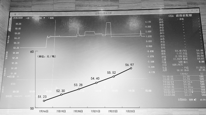 上海环境能源交易所(以下简称环交所)数据显示,上线以来,截至7月23日,全国碳市场碳排放配额(CEA)延续涨势,实现“六连阳”。