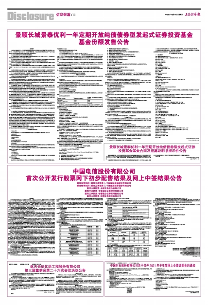 11、投资者可阅读刊登在2021年8月11日《上海证券报》的《景顺长城景泰优利一年定期开放纯债债券型发起式证券投资基金基金合同及招募说明书提示性公告》。