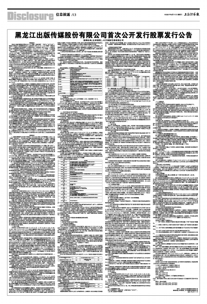 9、本公告仅对股票发行事宜扼要说明,不构成投资建议。投资者欲了解本次发行的详细情况,请仔细阅读2021年7月21日登载于上交所网站(www.sse.com.cn)的《黑龙江出版传媒股份有限公司首次公开发行股票招股说明书》(以下简称“《招股说明书》”)全文及相关资料。