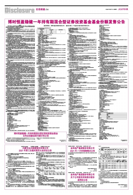 12、本公告仅对本基金份额发售的有关事项和规定予以说明。投资者欲了解本基金的详细情况,请详细阅读发布在本公司网站(http://www.bosera.com/)和中国证监会基金电子披露网站(http://eid.csrc.gov.cn/fund)上的本基金招募说明书、产品资料概要,及刊登在2021年08月11日的《上海证券报》上的《博时恒盈稳健一年持有期混合型证券投资基金基金合同及招募说明书提示性公告》。
