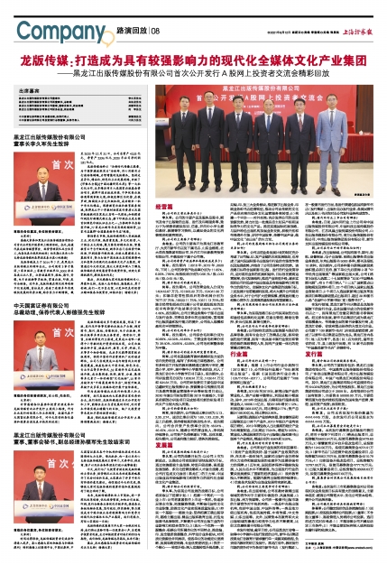 ——黑龙江出版传媒股份有限公司首次公开发行A股网上投资者交流会精彩回放